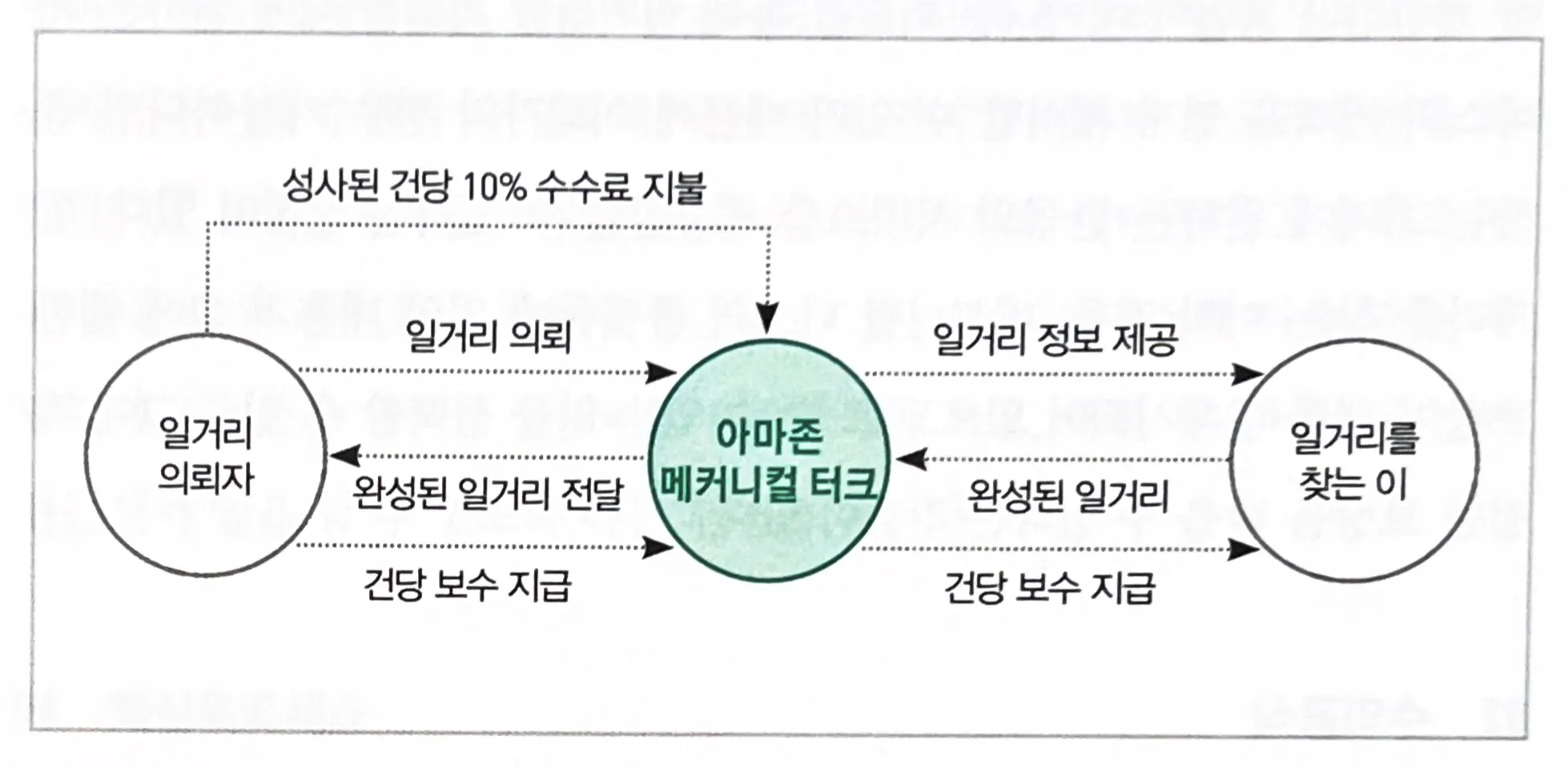 공급자 (아마존 전세계 회원) : 일 내용 확인 → 그 중 원하는 사람들이 일을 처리함 → 그에 대한 보상(제시된 금액)을 아마존 계정을 통해 지급받을 수 있음