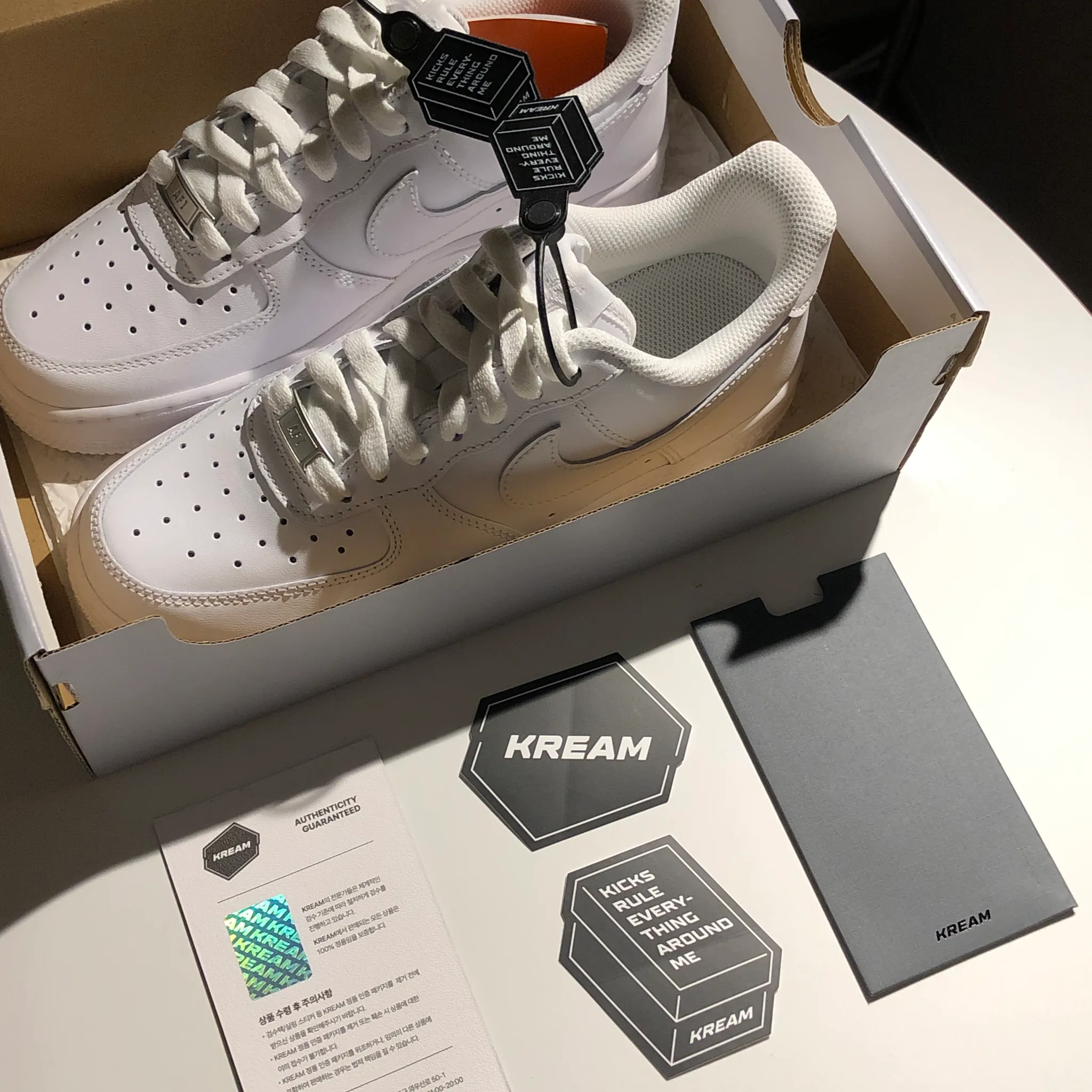 KREAM에서 구매한 상품이 도착했다. 와! 진짜 인증택이 있잖아. 뭐랄까. 자랑하고 싶달까?(뽐내야 돼) 생각보다 굿즈가 고퀄이다. 스티커지만. 플라스틱이지만. 기분이 좋다ㅎ 앞으로도 신발살땐 KREAM부터 봐야지ㅎ.