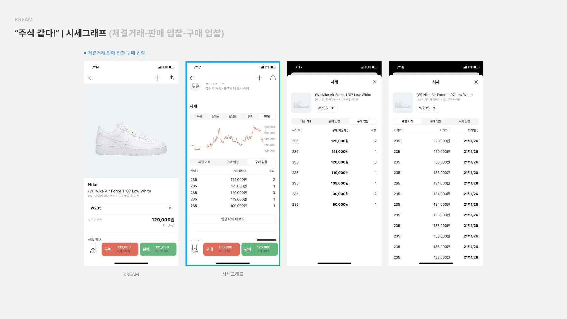 KREAM에서 구매-판매자가 주요하게 볼 지표는 [체결거래-판매 입찰-구매 입찰] 판이다.