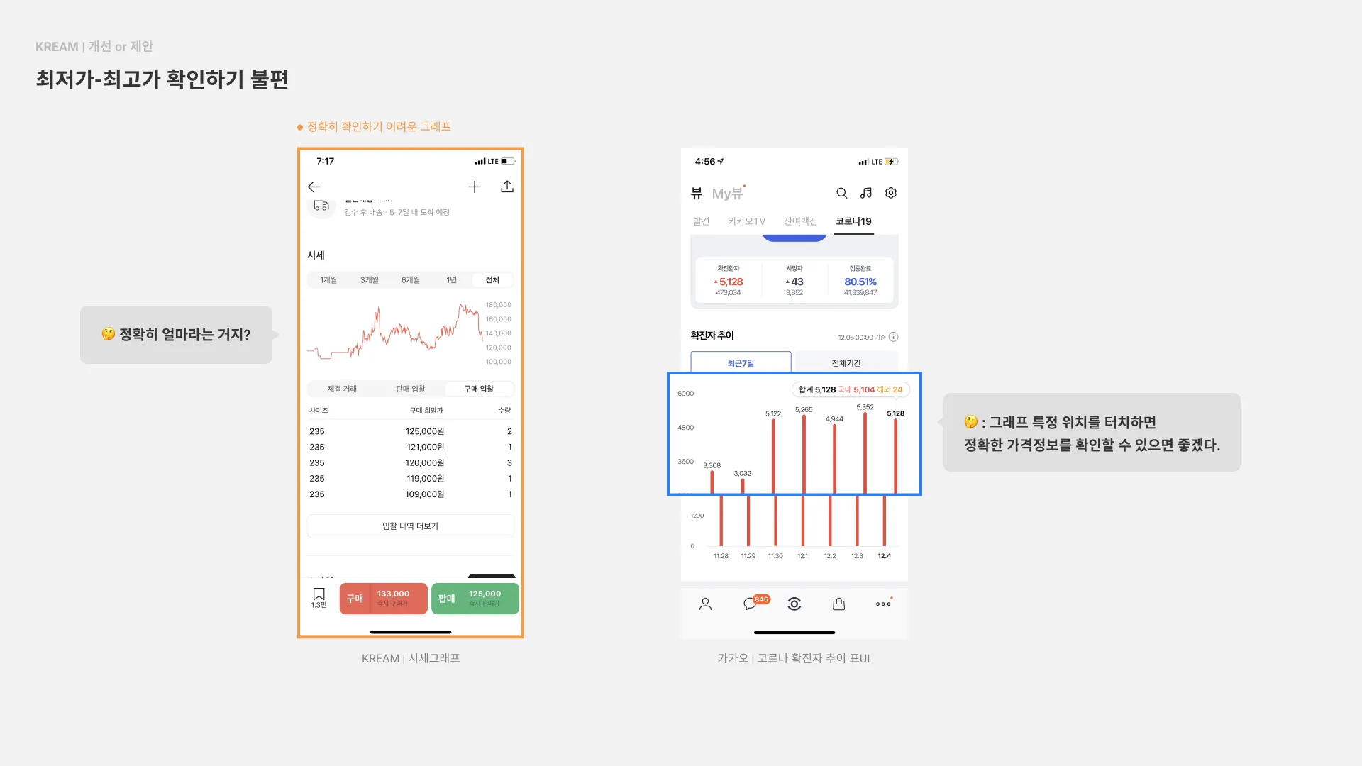 : 그래프 특정 위치를 터치하면 정확한 가격정보를 확인할 수 있으면 좋겠다.
