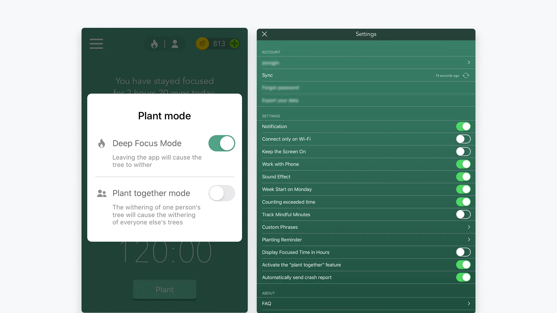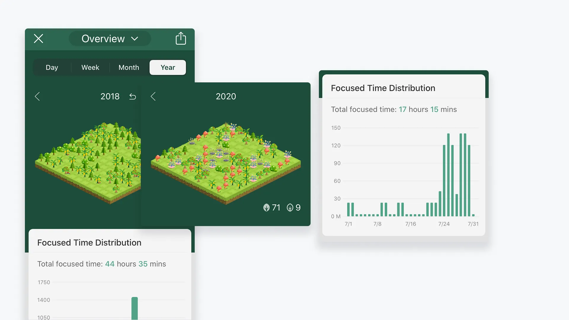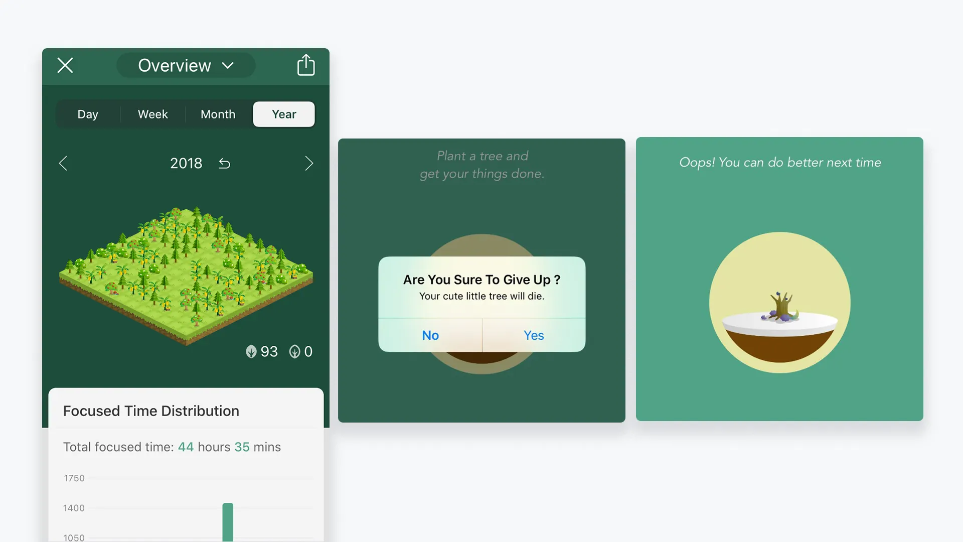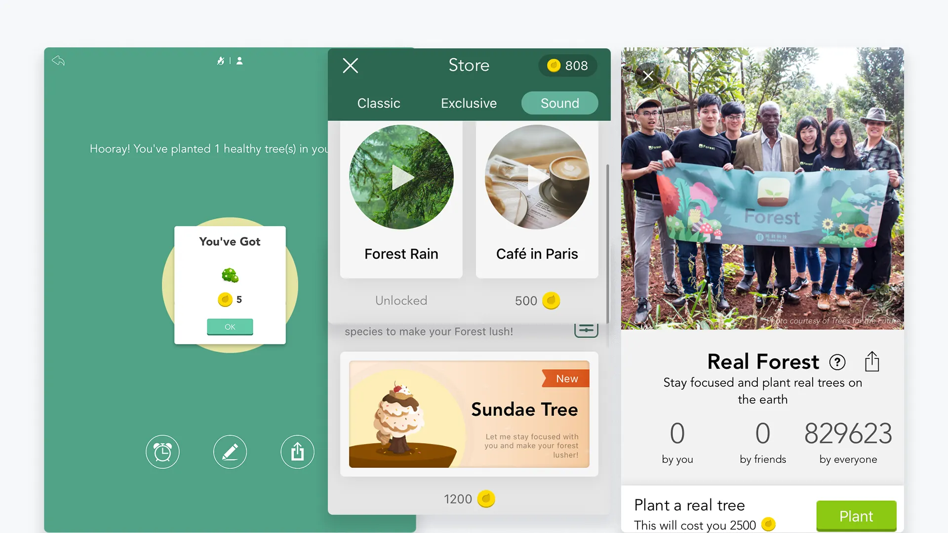 성공시, 코인을 받는 보상피드백이 오고 코인으로 집중을 위한 노래를 구매하거나 다른 식물을 구매할 수 있고,