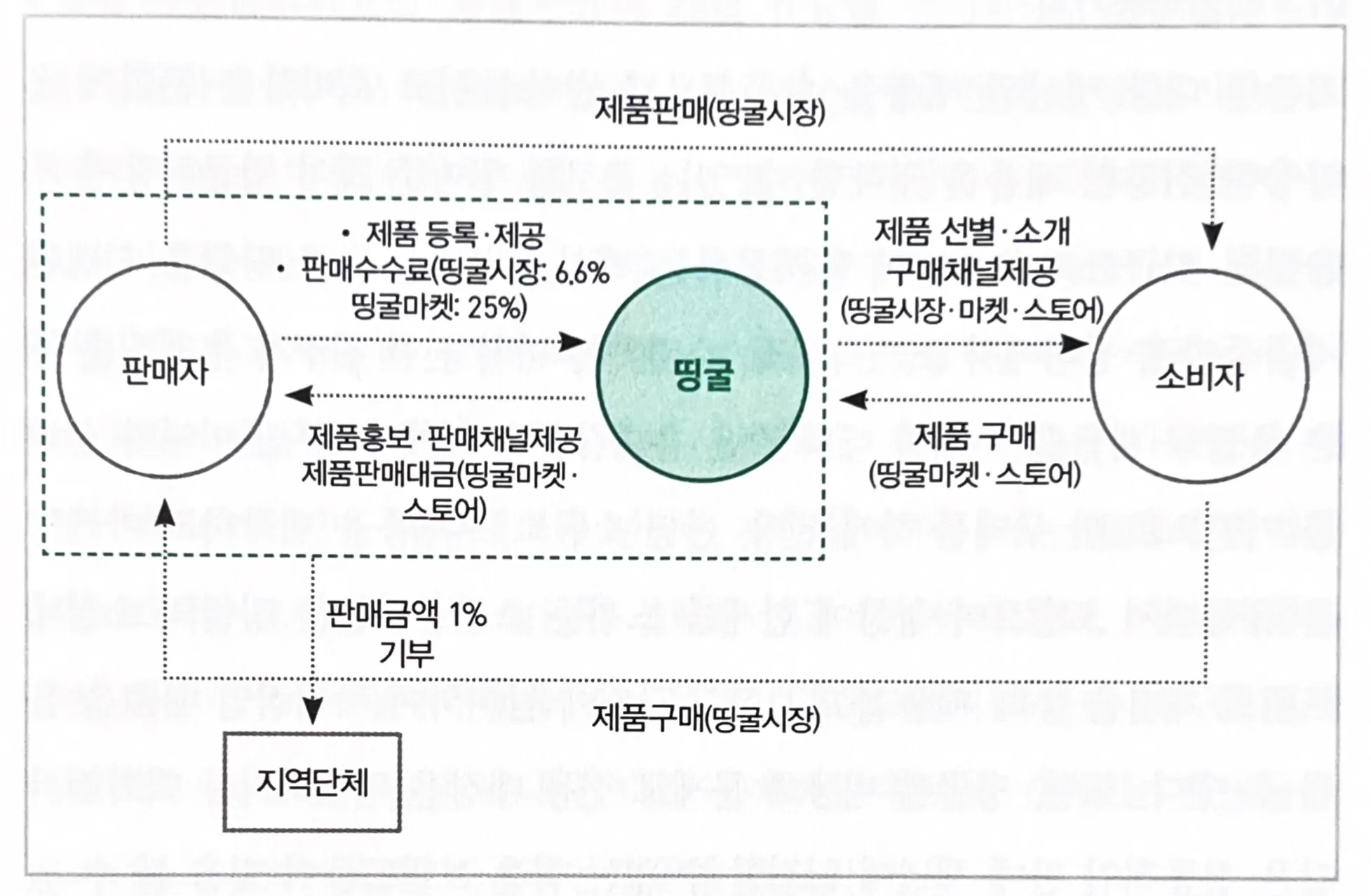 판매자 : “소상공인” → 띵굴의 소셜네트워크 채널을 통해 제품 홍보/ 장터 참여 → 즉각적인 매출 상승