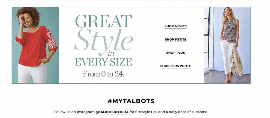 1946년생~1964년생 사이에서 인기 있는 의류 브랜드, Talbots 도 클릭 가능한 텍스트를 명확하게 보여주고 있다.