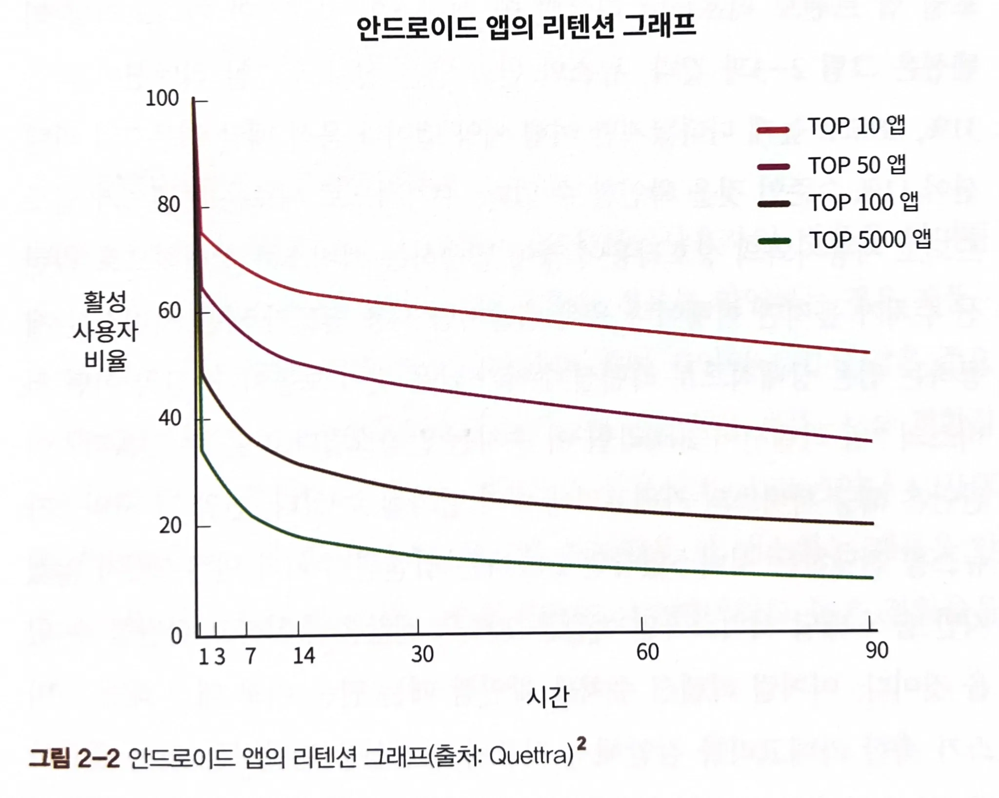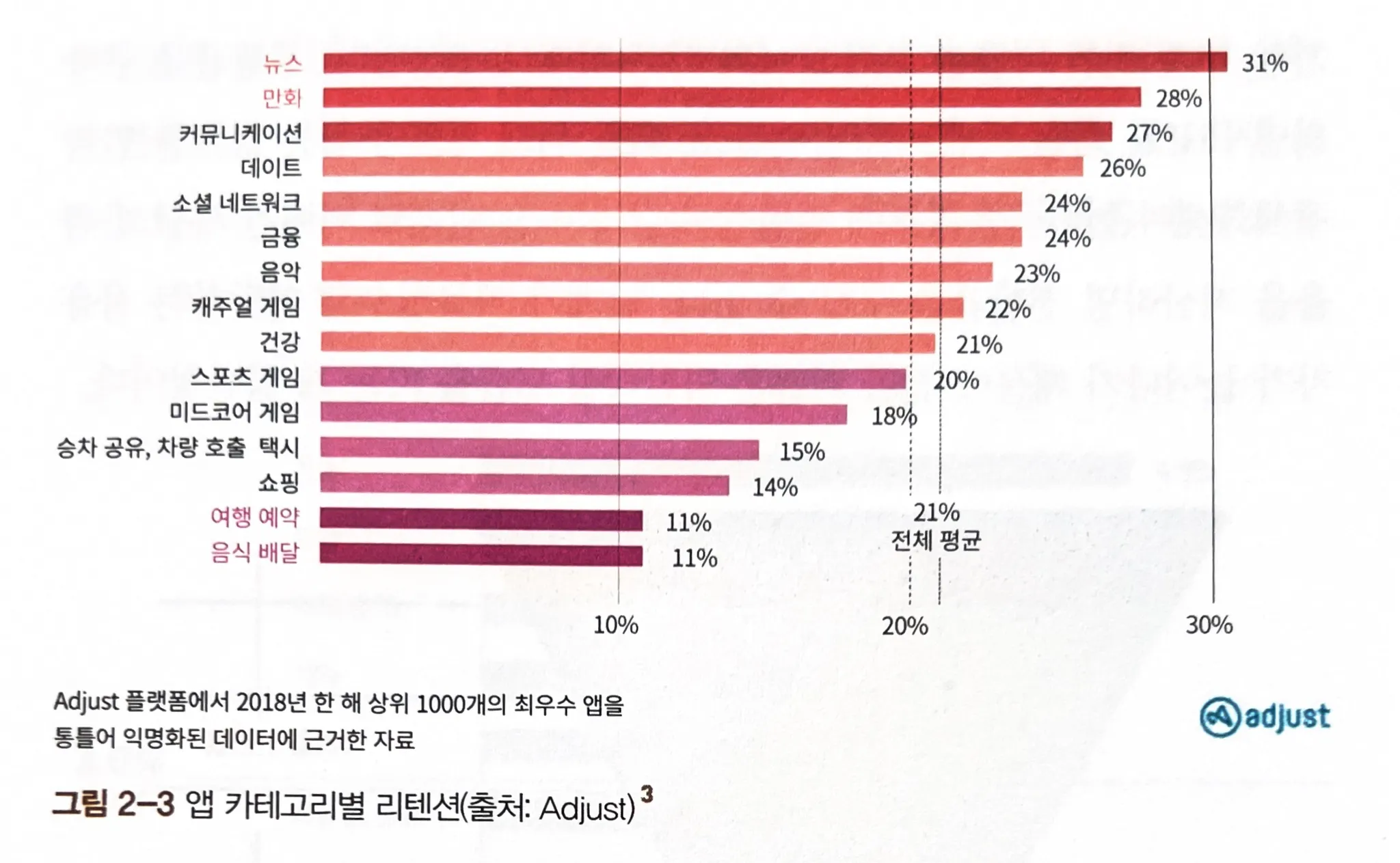 → 앱 카테고리마다, 재방문 패턴이 다르므로 / 리텐션 수치를 확인할 때는 단순 비교 대신,