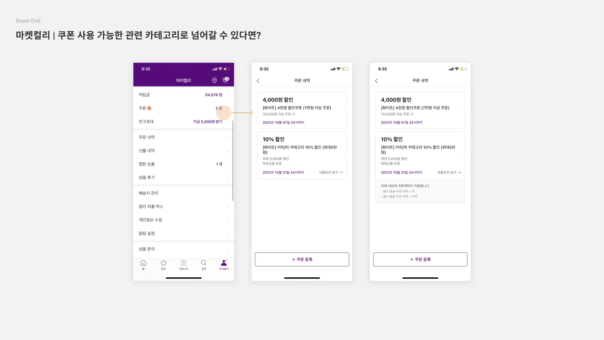 Dead End를 마켓컬리 이용 중 실제로 접해보니, 다른 서비스들은 어떻게 하는지 궁금했다. 그래서 쿠폰 경험 위주로 Dead End/NO Dead End를 정리해 봤다.