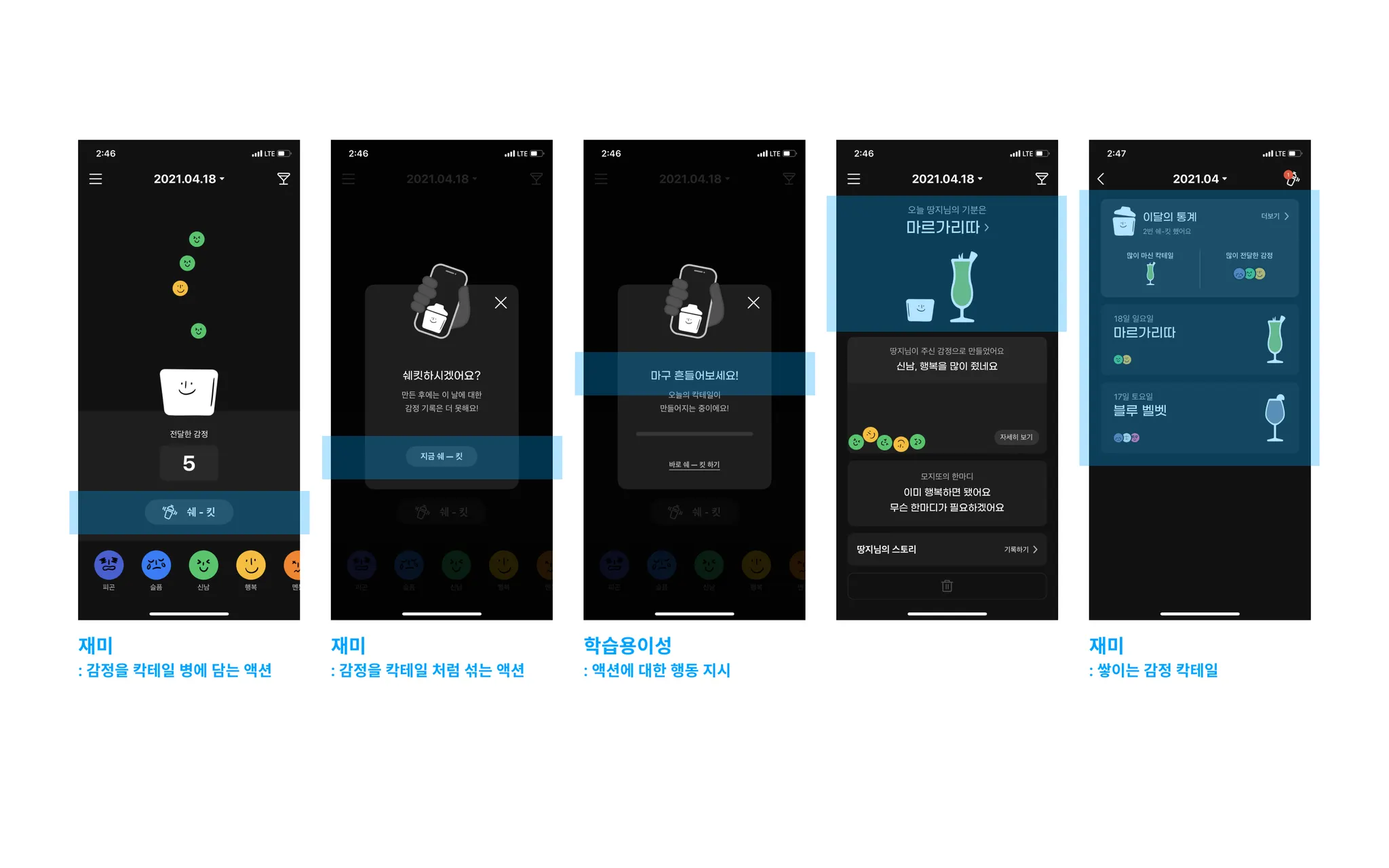 칵테일-모지또를 매개체로 감정을 정의해주는 재미와 기능을 가지고 있다.