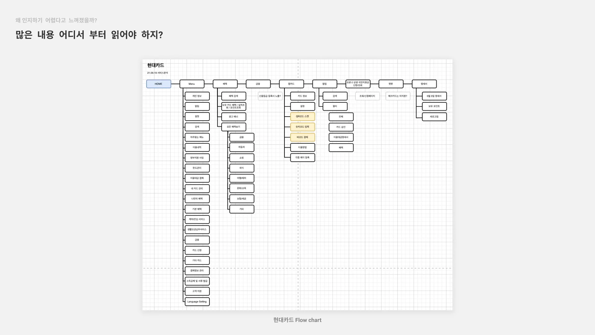 현대카드의 Flowchart를 그려보니, 햄버거 메뉴가 특히 무거웠다. (내용이 많았다)